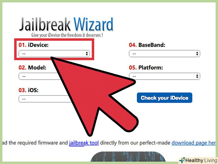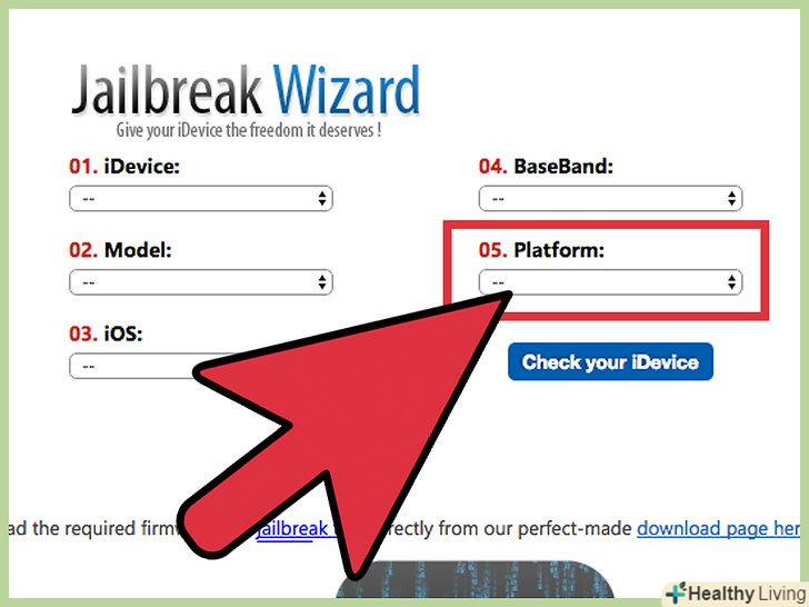Виберіть свій комп'ютер у розділі Platform (операційна система), а потім натисніть кнопку «Check your iDevice» (перевірити пристрій).це відобразить назву програмного забезпечення, за допомогою якого можна зламати ваш пристрій.
