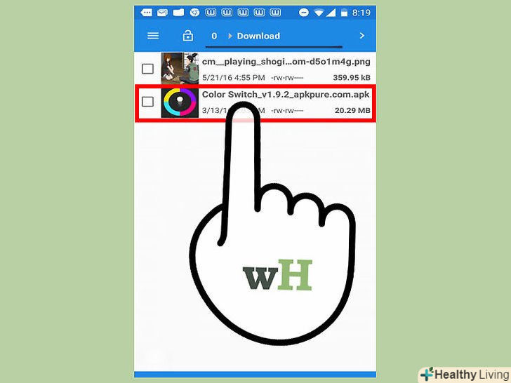 Відкрийте папку завантаження на Android і виберіть APK файл.