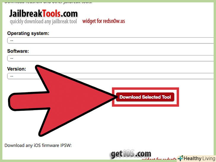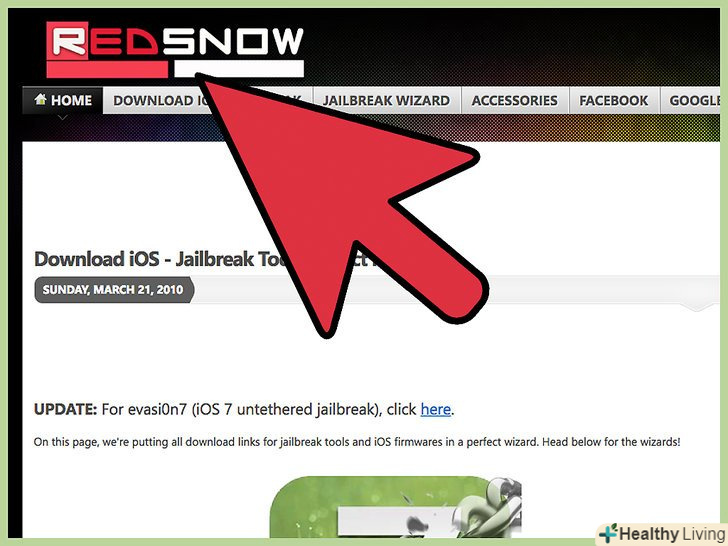 Відкрийте офіційну сторінку програми для злому.в якості альтернативи перейдіть на сторінку завантажень Redsn0w, де розташовані програми для злому: http://www.redsn0w.us/2010/03/download-direct-links-jailbreak-guides.html.