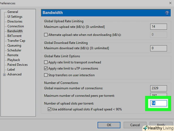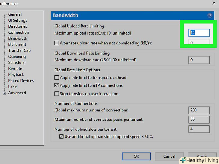 Введіть14 у текстовому полі «Максимальна швидкість завантажень». воно знаходиться у верхній частині сторінки.[1]