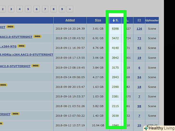 Знайдіть торрент з великою кількістю сидів.якщо ви віддаєте перевагу швидше завантажити файл і не дуже дбаєте про його якість і розмір, знайдіть торрент цього файлу з великим числом сидов.- Наприклад, можна знайти торрент фільму з якістю 720p (HD) і більшим числом Сідов, ніж у того ж фільму з якістю 1080p (Full HD).