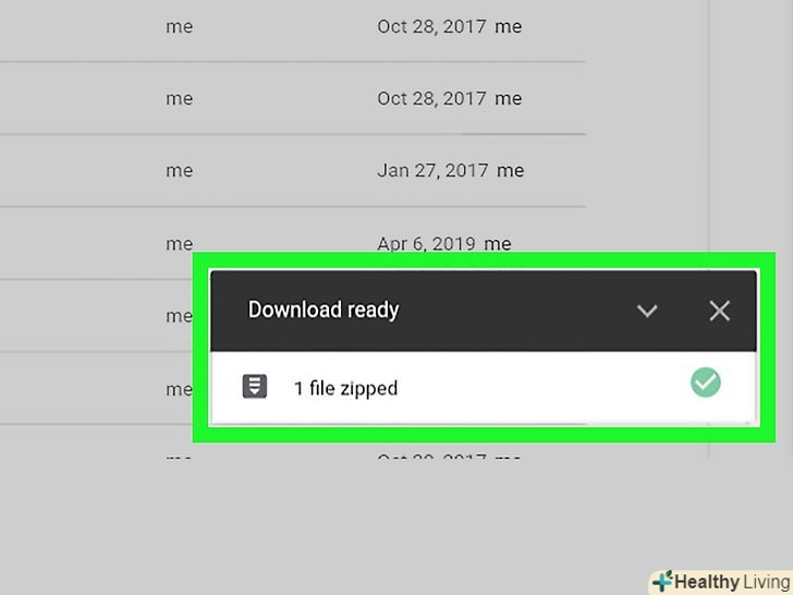 НатиснітьЗавантажити В меню.Google Диск стисне папку в архів (zip-файл). Коли файл буде готовий, з'явиться вікно завантаження.