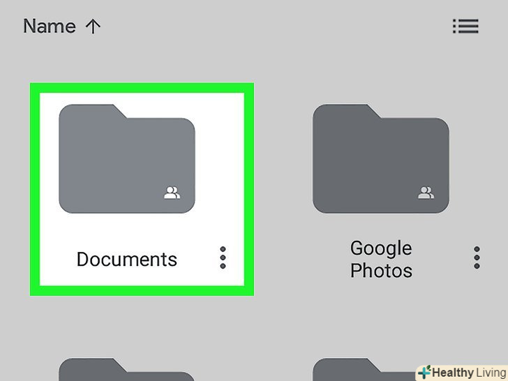 Запустіть програму Google Диск на Android-пристрої. натисніть на значок у вигляді зелено-синьо-жовтого трикутника зі словом "Диск" ; цей значок знаходиться на панелі додатків. У додатку Google Диск завантажити папку не вийде, але можна вибрати всі файли всередині папки, щоб завантажити їх на пристрій.[1]- Використовуйте цей метод, якщо хочете, щоб файли синхронізувалися з файлами, які зберігаються в Google Диску.