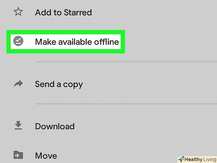 НатиснітьОфлайн-доступ В меню.відтепер вибрані файли будуть синхронізуватися з Android-пристроєм. Щоб переглянути список всіх файлів, доступних офлайн, натисніть «☰» у верхньому лівому куті Google Диска, а потім торкніться «Офлайн».