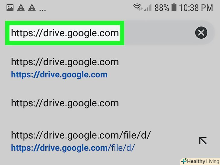 Перейдіть за адресоюHttps://drive.google.com у веб-браузері.оскільки в мобільному додатку Google Диск завантажити папку не вийде, відкрийте Диск у веб-браузері (як на комп'ютері). Якщо ви ще не ввійшли до свого облікового запису Google, дотримуйтесь інструкцій на екрані.- Використовуйте цей метод, якщо хочете зберегти папку на Android-пристрої в її поточному стані. Пам'ятайте, що будь-які зміни, внесені в файли на пристрої, не відобразяться на файлах, які залишилися в Google Диску.
