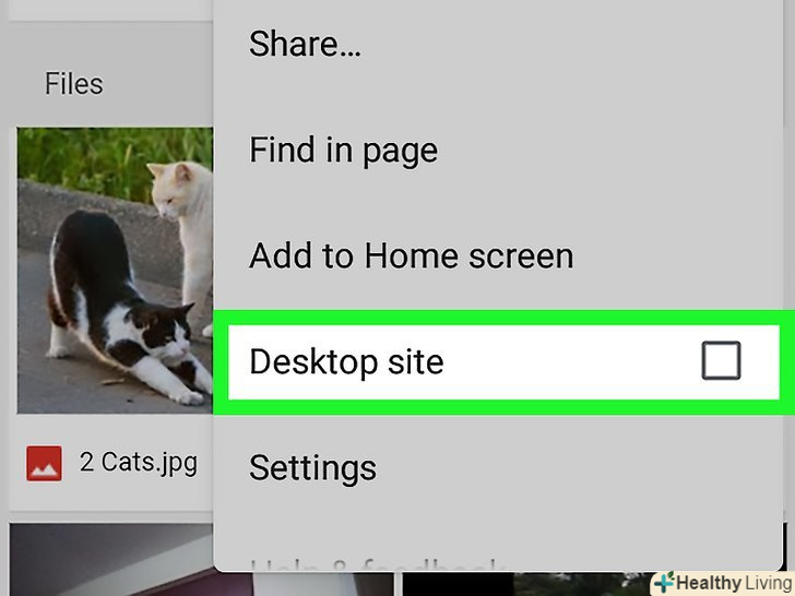 Перейдіть в повну (комп'ютерну) версію сайту. у браузері Chrome, який встановлено на більшості пристроїв Android, торкніться символу "⋮ «у верхньому правому куті та в меню виберіть»повна версія". Це призведе до оновлення сторінки, і вона відобразиться як на комп'ютері. В іншому браузері виконайте аналогічні дії.