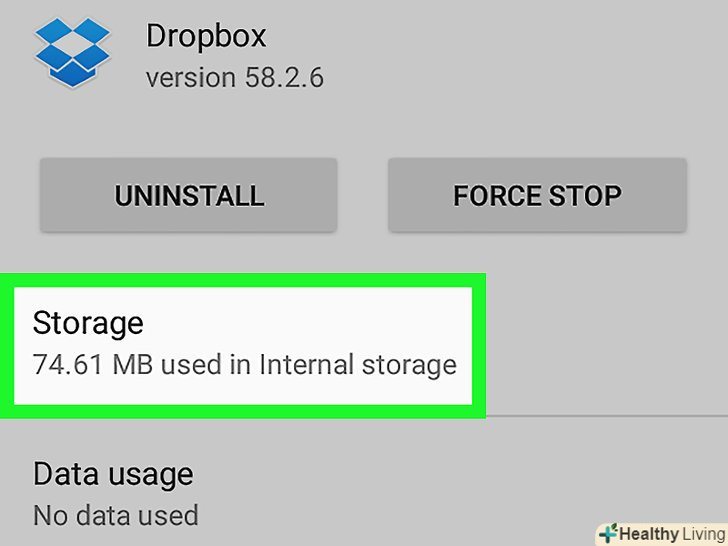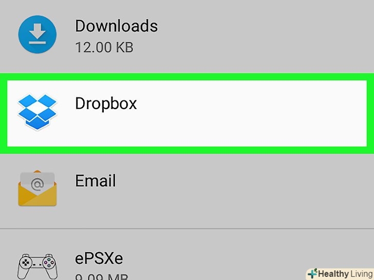 Прокрутіть сторінку вниз і натиснітьDropbox.відкриється сторінка з інформацією про Dropbox.- Якщо список програм не відобразився, торкніться "Диспетчер додатків".