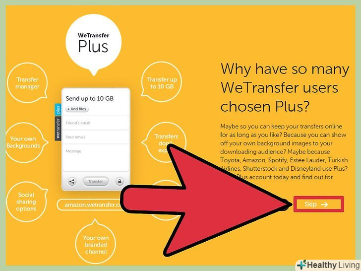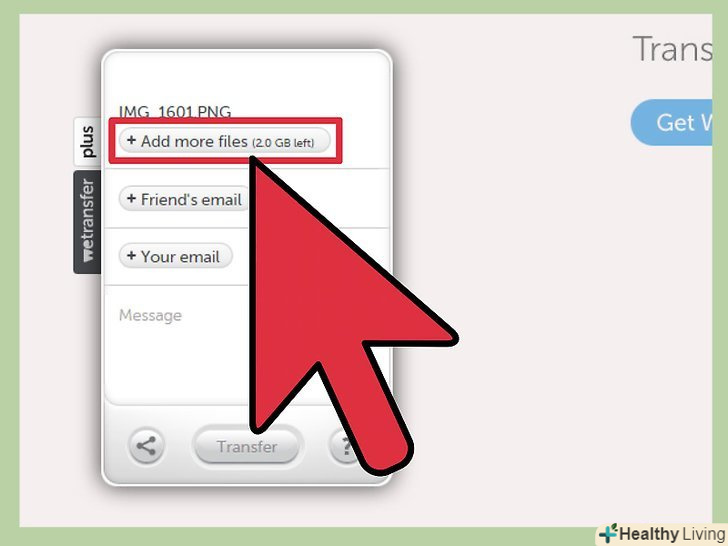 Виберіть відповідний файлообмінник (з великої множини).нижче наведені деякі з найбільш популярних файлообмінників.[3]- WeTransfer (wetransfer.com). це один з найпопулярніших файлообмінників; він створює і відправляє лист з посиланням на ваш файл (або ви можете просто створити посилання на файл). Ви можете завантажувати файли розміром до 2 ГБ без створення облікового запису.