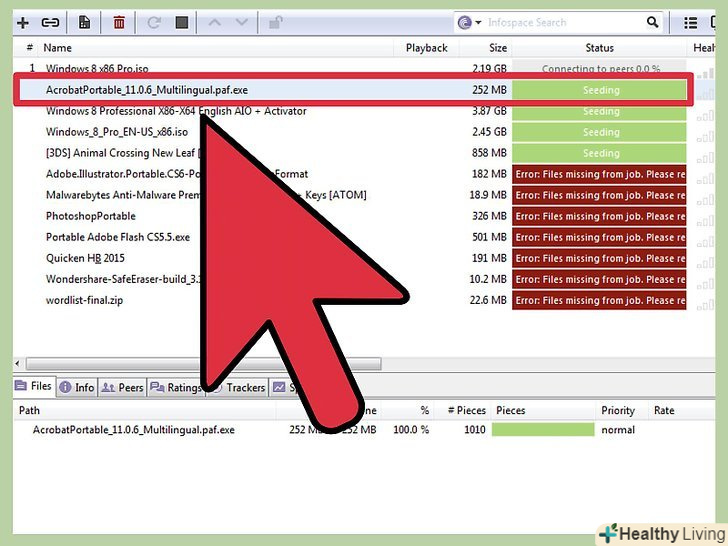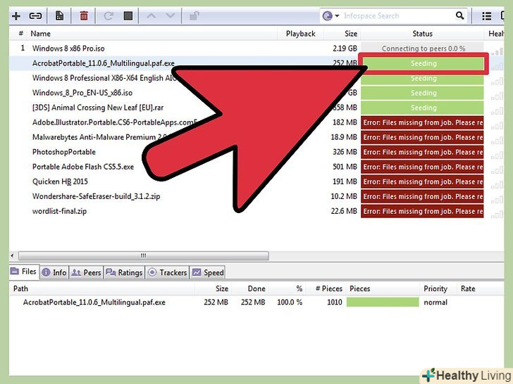Не вимикайте комп'ютер, запустіть торрент-клієнт і не переміщайте торрент.так ваші файли будуть доступні для скачування.- Якщо ви перемістите торрент, інші користувачі не зможуть завантажувати файли з Вашого комп'ютера. Це викликано тим, що розташування файлу у вашому комп'ютері вже вказано в торренті.