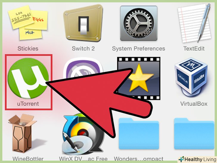 Скачайте програму μTorrent на сайті www.utorrent.com. Ця програма підтримує різні операційні системи, тому скачайте версію для Mac OS X. вкажіть папку для інсталяційного файлу (наприклад, робочий стіл або папку для завантажень).- Коли інсталяційний файл завантажиться, клацніть по файлу uTorrent.dmg, щоб розпакувати програму.