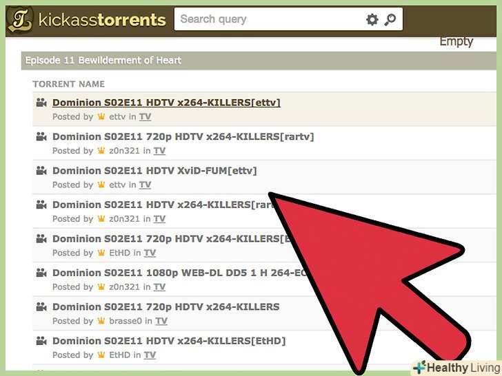 Перегляньте список доступних торрентів.зверніть увагу на перші результати пошуку. Виберіть один з них на підставі розміру файлу (великі файли довше викачуються, але зате вони більш якісні) і типу файлу (avi, mkv, mp4 і так далі).- Якщо ви не знаєте, який торрент вибрати, зупиніться на роздачі з найбільшим числом Сідов.