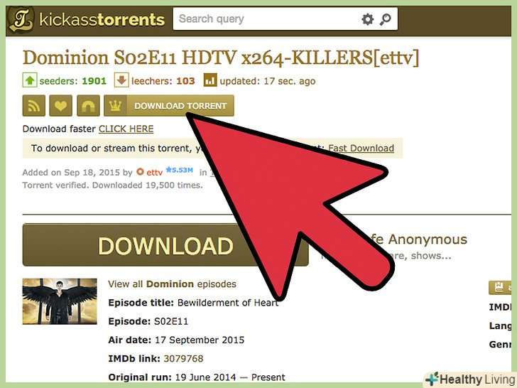 Скачайте торрент.для цього клацніть по значку у вигляді магніту або за посиланням «Завантажити торрент». Чи не клацайте по посиланнях "завантажити безпосередньо«,» завантажити «або» завантажити магнітну посилання", щоб уберегтися від спливаючих вікон і перенаправлень на інші сайти.- В процесі скачування торрента ви почнете роздавати його фрагменти, які вже завантажилися на ваш комп'ютер.