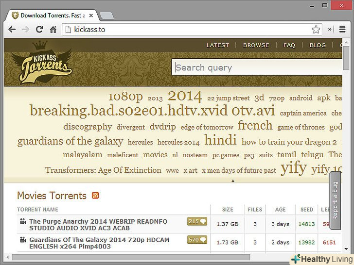 На сайті (торрент-трекері) KickassTorrents можна скачати музику, фільми, програми, книги і безліч інших файлів. Але для цього вам знадобиться торрент-клієнт – програма, що завантажує потрібний вам файл з комп'ютерів інших користувачів.