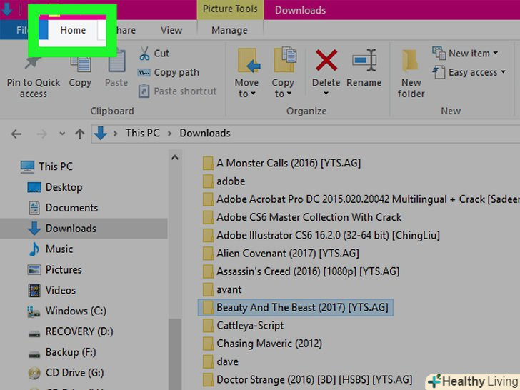 Натисніть на вкладкуГоловна в лівому верхньому кутку вікна провідник.