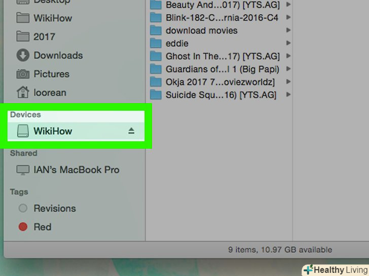Натисніть на ім'я флеш-накопичувача під заголовком "пристрої" в лівій частині вікна Finder.- За замовчуванням флешка буде називатися»Безіменне пристрій".