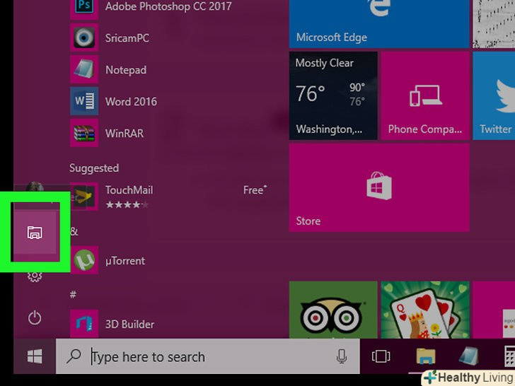 Відкрийте Провідник, натиснувши на іконку папки в лівій нижній частині меню»Пуск".