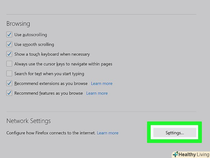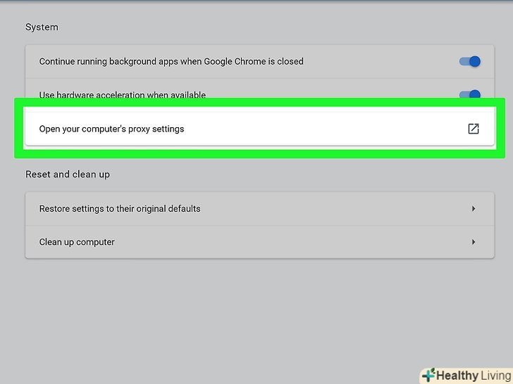 Прокрутіть вниз і натиснітьНалаштування проксі-сервера.ця опція знаходиться в розділі "Система" в нижній частині сторінки. Відкриється вікно "Властивості Інтернету «(Windows) або» мережа" (Mac).