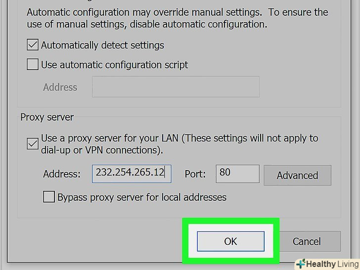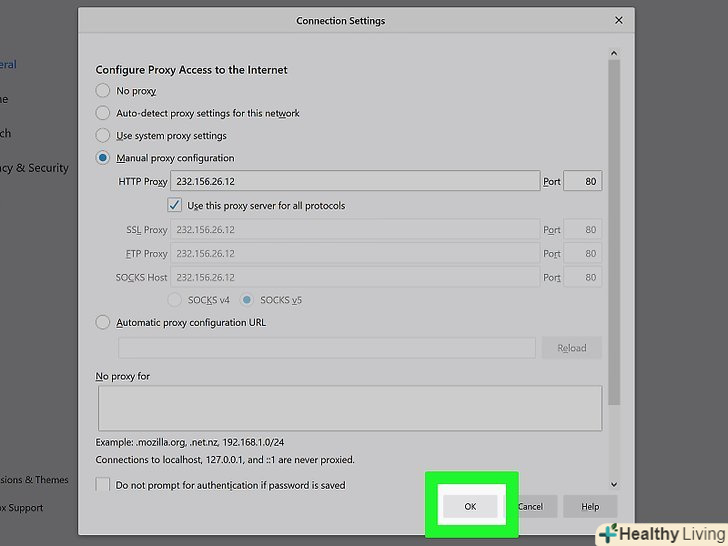Клацніть поOK. налаштування проксі-сервера будуть збережені.