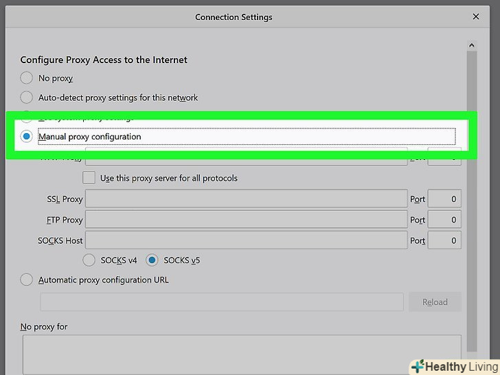 Встановіть прапорець уРучна настройка проксі.ця опція знаходиться в розділі "налаштування проксі для доступу в інтернет".