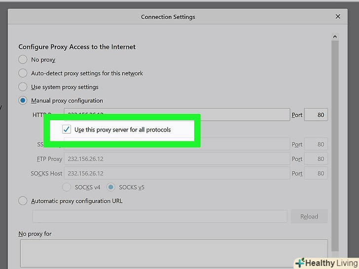 Встановіть прапорець біля опції "використовувати цей проксі-сервер для всіх протоколів". вона знаходиться безпосередньо під полем «HTTP проксі».