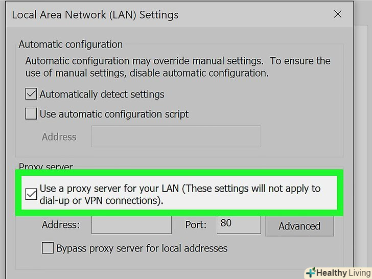Поставте прапорець біля опції "Використовувати проксі-сервер для локальних підключень".ця опція знаходиться в розділі "проксі-сервер".