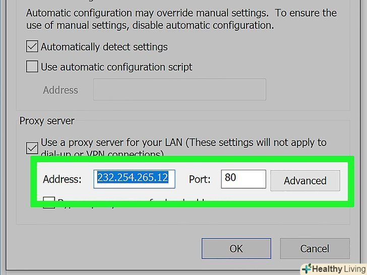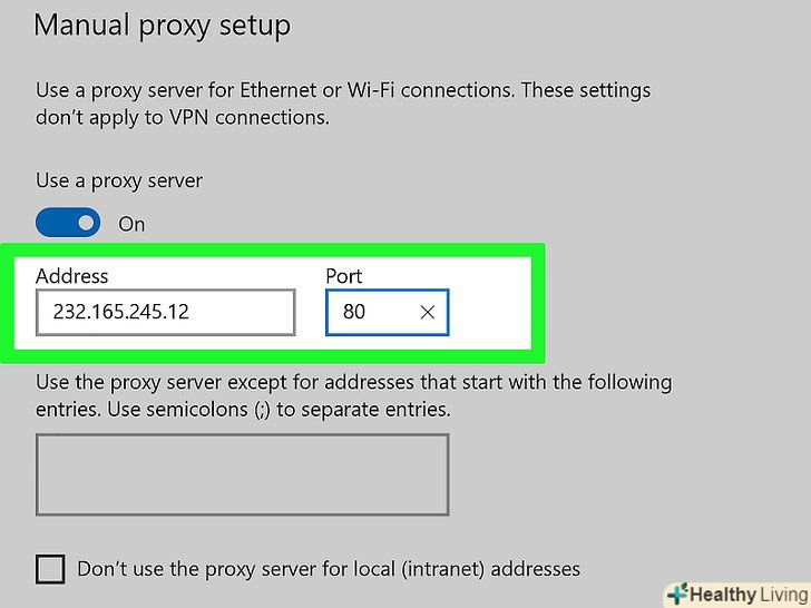 Введіть інформацію про проксі-сервер.заповніть наступні поля:- Адреса: введіть адресу проксі-сервера;