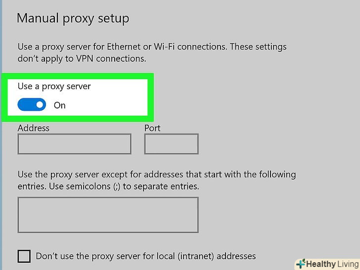 Активуйте проксі-сервер. натисніть на повзунок у розділі " Використовувати проксі-сервер»- Якщо цей повзунок вже знаходиться в положенні "включити", проксі-сервер активований.