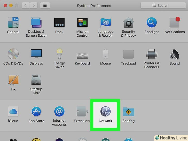 НатиснітьМережа. це значок у вигляді Земної кулі в меню "Системні налаштування".