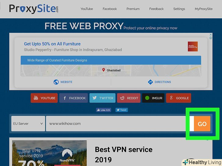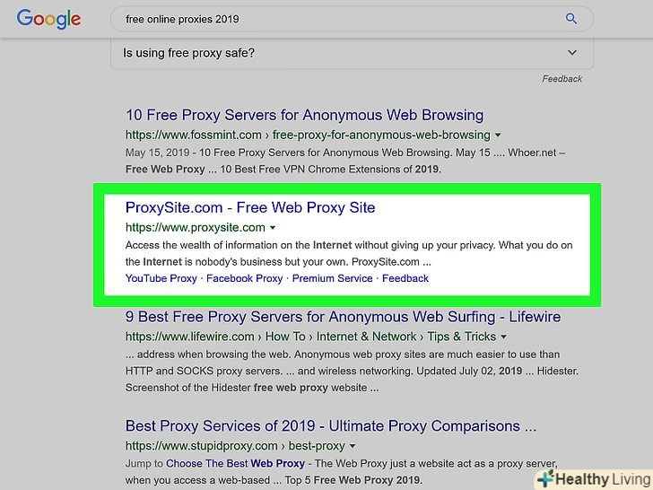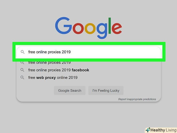 Знайдіть веб-проксі-сервер. Введіть безкоштовні веб-проксі 2020 в рядку пошуку браузера та натисніть ↵ Enter. Ось адреси деяких сервісів веб-проксі:[1]