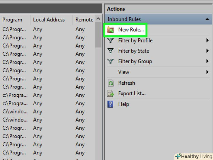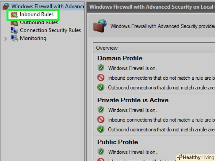 НатиснітьПравила для вхідних підключень.ця опція знаходиться у верхній лівій частині вікна.