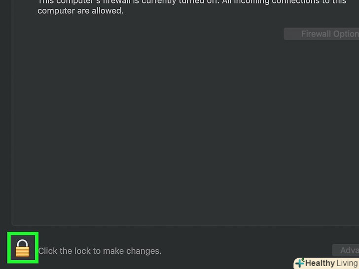 Розблокуйте налаштування брандмауера.клацніть по значку у вигляді замка, введіть пароль адміністратора і натисніть "розблокувати".