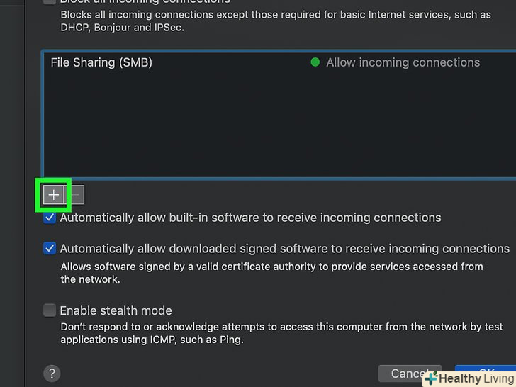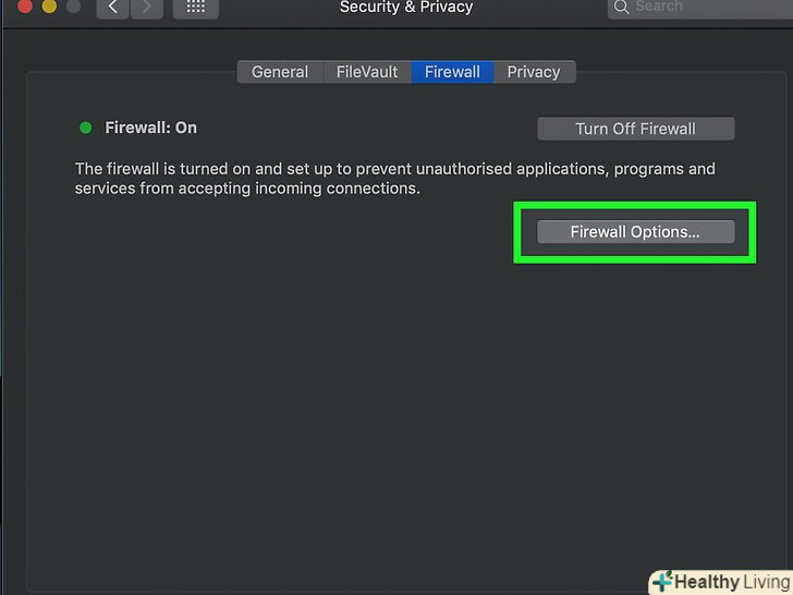 - Майте на увазі, що брандмауер Mac OS X за замовчуванням вимкнений. Якщо ви не включили брандмауер, вам не потрібно виконувати описуваний процес.