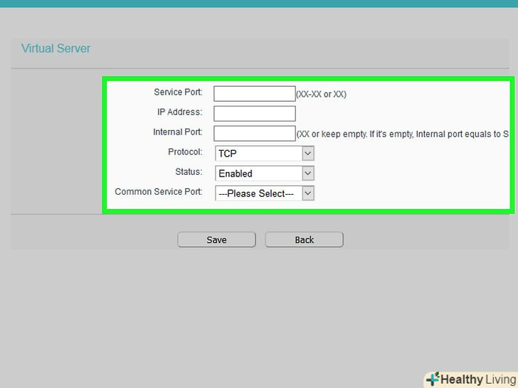Відкрийте потрібний порт.цей процес залежить від моделі маршрутизатора, але в більшості випадків необхідно ввести наступні дані:- Name (Ім'я) або Description (опис): введіть назву програми.
