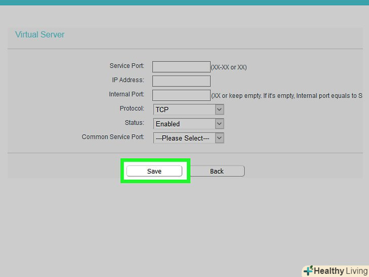 Збережіть налаштування. натисніть кнопку "Save «(Зберегти) або» Apply" (застосувати). Якщо з'явиться запит, перезапустіть маршрутизатор, щоб зміни вступили в силу.- Можливо, буде потрібно встановити прапорець у «Enabled «(активувати) або» On " (включити) біля рядка з номером порту.