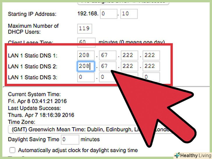 Відкрийте сторінку конфігурації свого маршрутизатора.маршрутизатор потрібно налаштувати так, щоб він використовував DNS-сервери OpenDNS, які будуть обробляти заблоковані Вами сайти. Для цього відкрийте сторінку конфігурації маршрутизатора в веб-браузері на комп'ютері. Поширеними адресами маршрутизаторів є:- Linksys/TP-Link/Zyxel —http://192.168.1.1