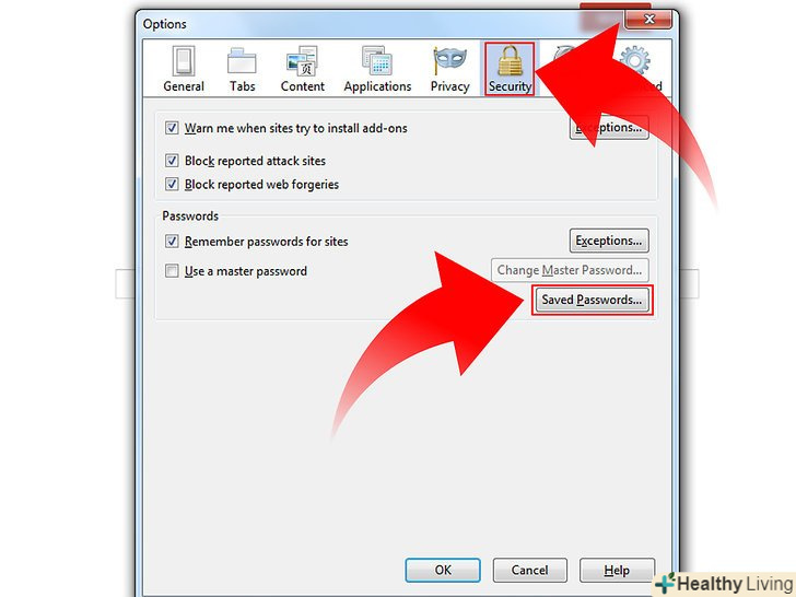 Відкрийте вкладку "Захист".натисніть «збережені паролі». Відкриється вікно, що відображає веб-сайти і імена користувачів, у яких запам'ятовуються паролі.
