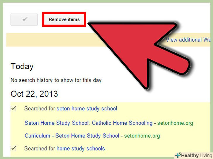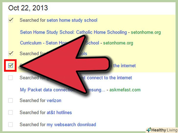 Перевірте записи, які потрібно видалити. на сторінці історії пошуку Search History ви побачите всі ваші пошуки, перераховані за останні кілька днів. Ви можете побачити старі елементи, натиснувши кнопку< span class="nowrap" title="This is not a clickable button; it illustrates the button one should find." style="font-family: Segoe UI, Frutiger, Frutiger Linotype, Dejavu Sans, Helvetica Neue, Arial, sans-serif;letter-spacing:0px;padding:0em .6em; border:1px solid; border-color:#AAA #555 #555 #AAA; -moz-border-radius: 0px; -webkit-border-radius: 0px; border-radius: 0px; background-color: #F2F2F2; background-image: -moz-linear-gradient(top, #FCFCFC, #E0E0E0); background-image: -o-linear-gradient(top, #FCFCFC, #E0E0E0); background-image: -webkit-linear-gradient(top, #FCFCFC, #E0E0E0); background-image: linear-gradient(top, #FCFCFC, #E0E0E0);">Older gt;. Установіть прапорець біля кожного запису, який ви хочете видалити.- Ви можете використовувати категорії на лівій стороні сторінки, щоб звузити результати, які відображаються.