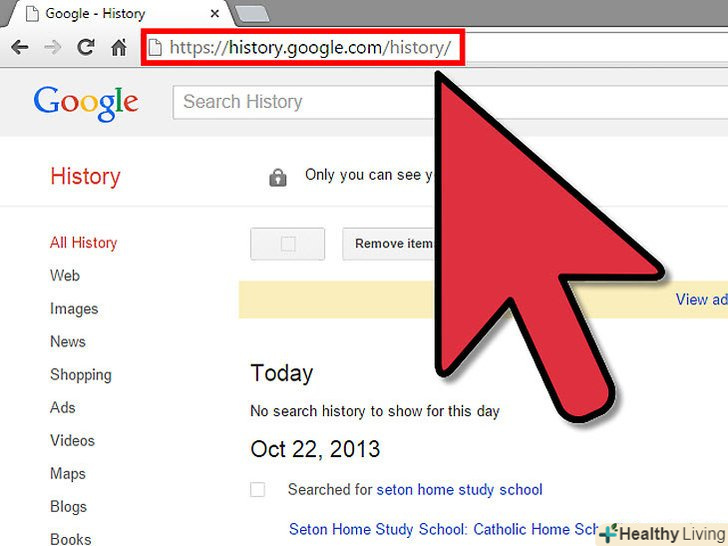 Відкрийте сторінку Google Search History. Це сторінка Google, яка відображає всі Google пошуки, які ви виконали при вході в систему з обліковим записом Google. Пошуки, виконані без входу в систему, не зберігаються.- Ви можете відкрити цю сторінку наgoogle.com/history.
