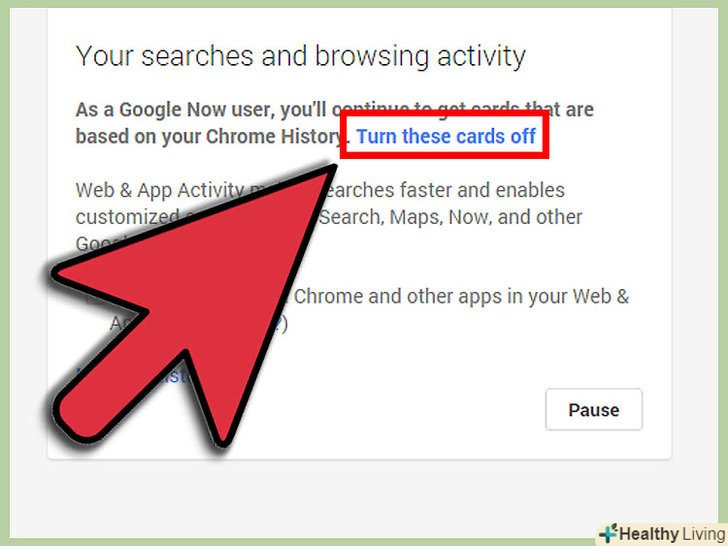 Вимкніть історію пошуку. якщо ви віддаєте перевагу, щоб Google не зберігав історію пошуку, натисніть кнопку Turn off на сторінці settings. Це не дозволить Google зберегти будь-яку історію пошуку, яка може вплинути на результати, які ви отримаєте.