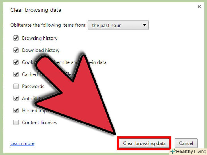 Очистіть автозаповнення в Google Chrome. Відкрийте вікно "Clear browsing data" натиснувши Ctrl+⇧ Shift+Del. Позначте поле "Autofill form data" і натисніть кнопку Clear browsing data, щоб видалити автоматичне заповнення записів.- Переконайтеся, що інтервал часу встановлений в положення "the beginning of time", якщо ви хочете видалити всі збережені записи.