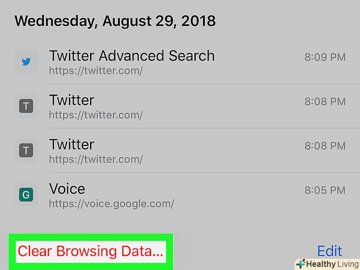 ТоркнітьсяОчистити історію.ви знайдете цю опцію внизу сторінки.- На пристрої Android натисніть "Видалити дані" у нижньому правому куті.
