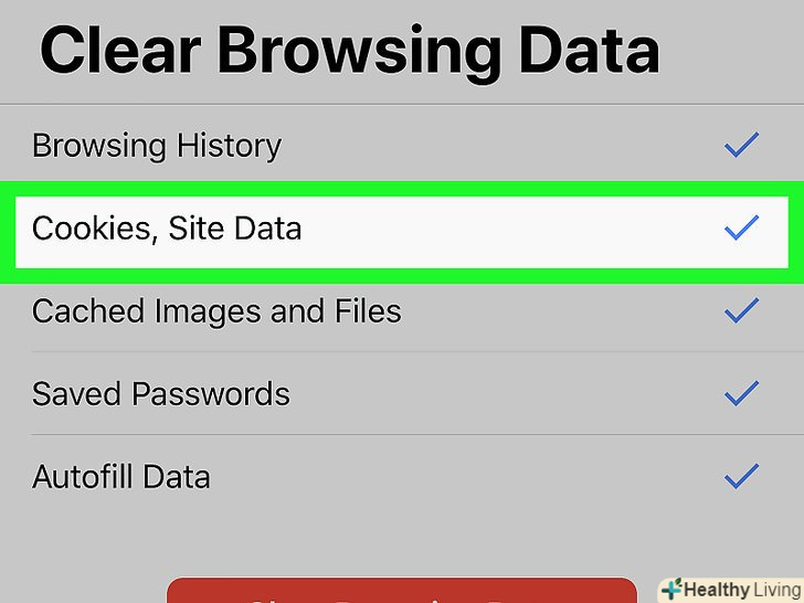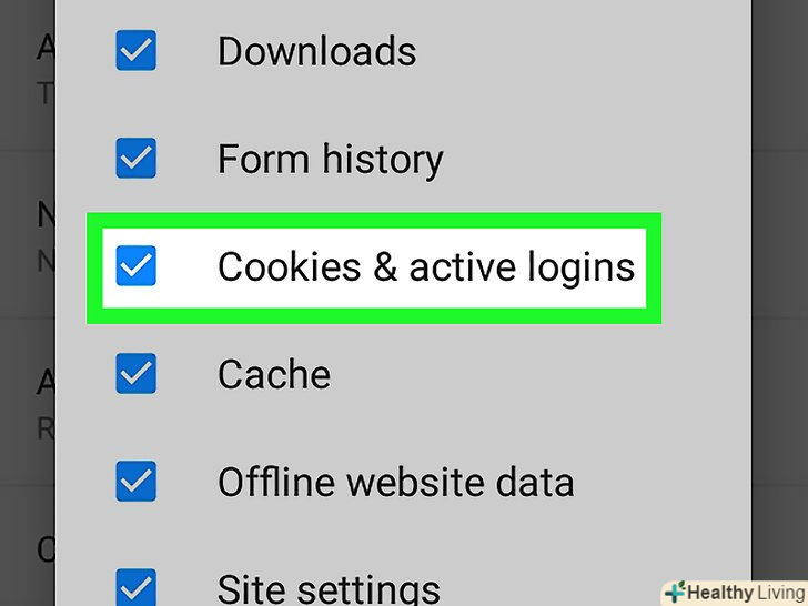 Встановіть прапорець біля "Куки і дані сайтів".- На Android-пристрої Ця опція називається "файли cookie і дані сайтів".
