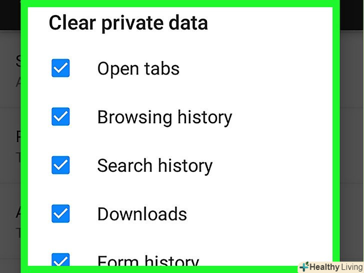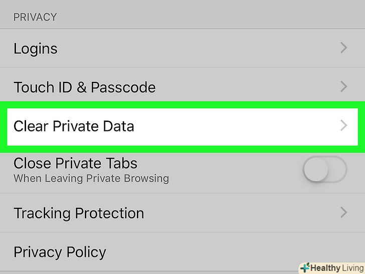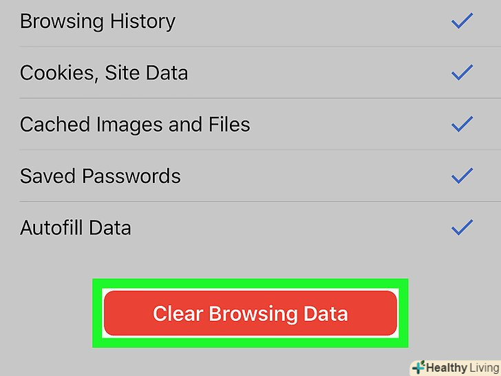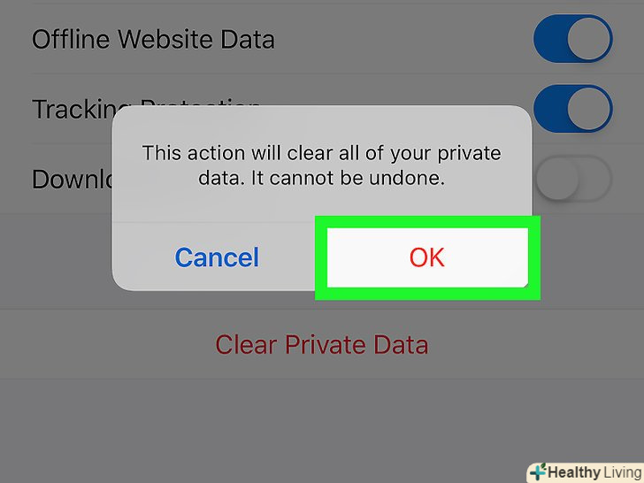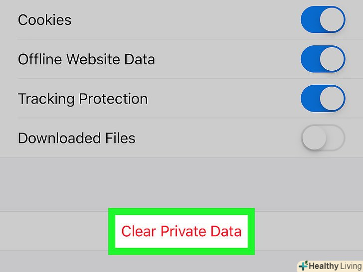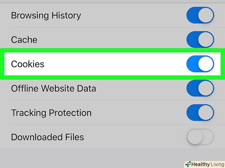 Торкніться білого повзункау опції»Куки". він стане синім-це означає, що будуть видалені куки браузера.