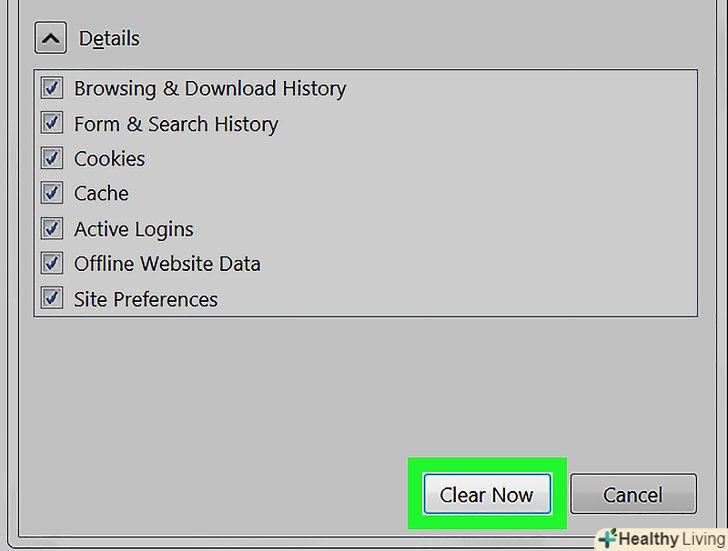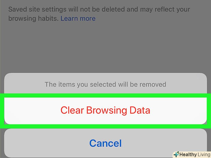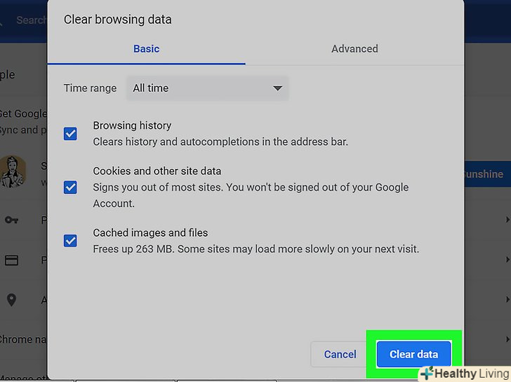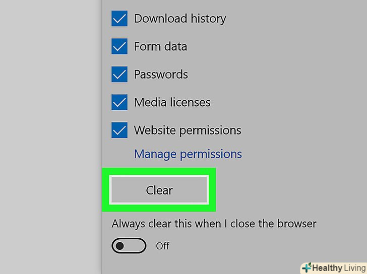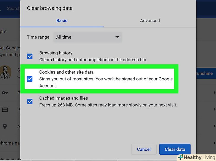 НатиснітьОчистити.ви знайдете цю кнопку під списком типів даних. Будуть видалені всі куки.