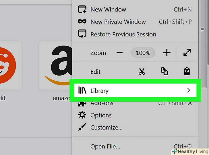 Клацніть поБібліотека.ця опція розташована вгорі меню. Відкриється меню "Бібліотека".