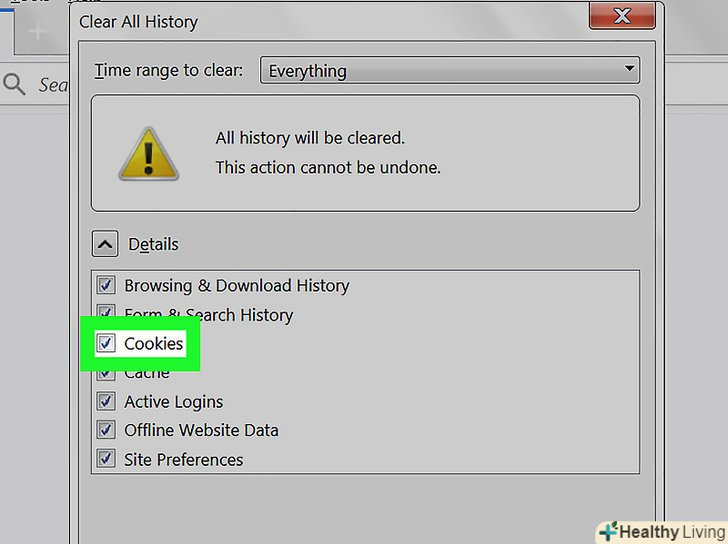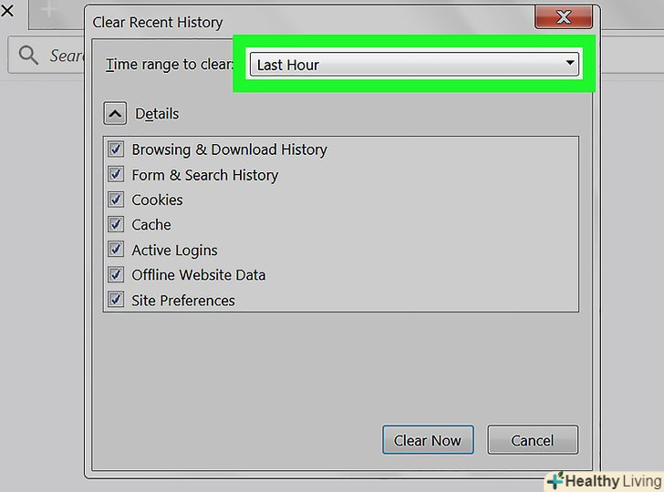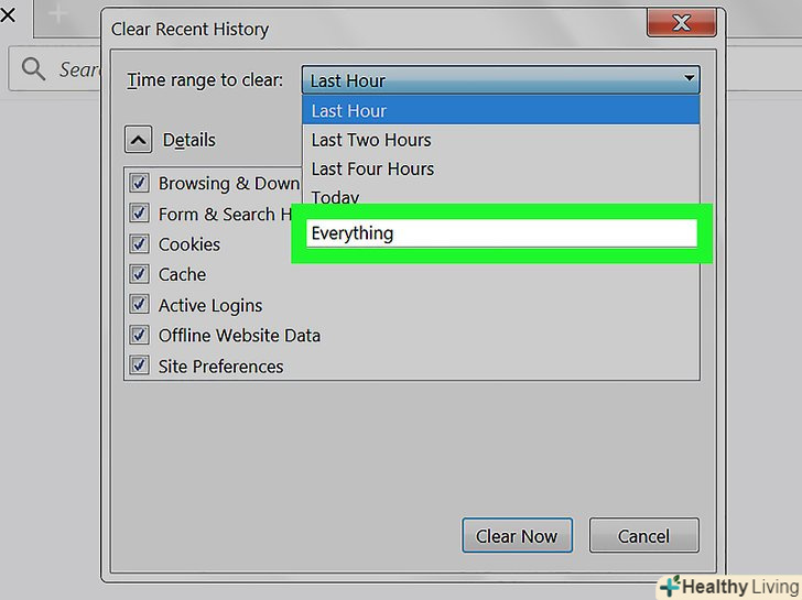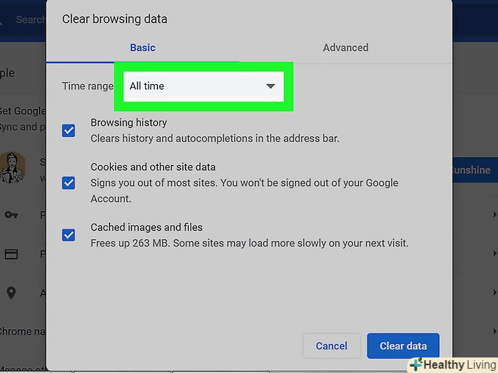 Переконайтеся, що вибрано опціюЗа весь час.відкрийте меню вгорі вікна; в цьому меню ви знайдете ряд тимчасових інтервалів (наприклад, «за минулу годину»). У відкритому меню знайдіть і клацніть по опції»за весь час". В цьому випадку будуть видалені всі куки, а не тільки останні.