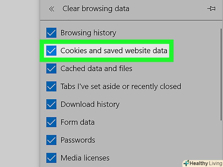 Встановіть прапорець біля " файли cookie, а також інші дані сайтів і плагінів».якщо бажаєте, зніміть прапорці біля РЕШТИ опцій, але у зазначеної опції прапорець повинен бути встановлений обов'язково.