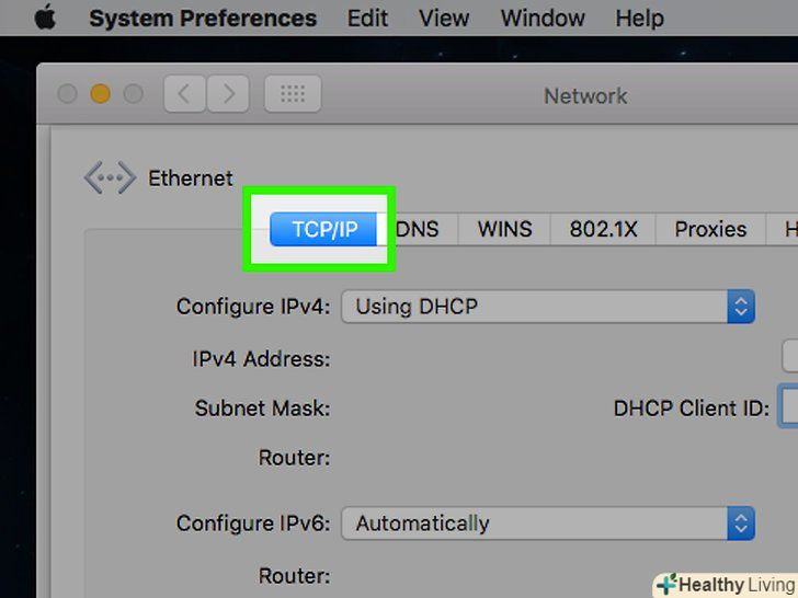 - У Mac OS X відкрийте меню Apple і виберіть "Системні налаштування". Натисніть "Мережа". Виберіть Активне мережеве підключення. Натисніть "Додатково". Перейдіть на вкладку "TCP / IP". Скопіюйте адресу, яка відображається в рядку "Маршрутизатор".