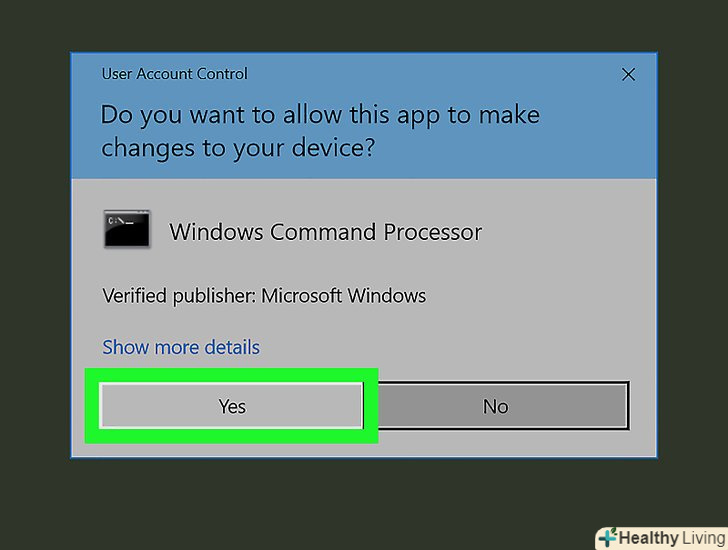 НатиснітьТак, коли з'явиться запит. так ви підтвердите, що хочете відкрити командний рядок.