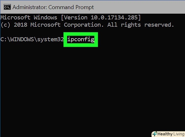 Введітьipconfig натисніть ↵ Enter.відобразиться інформація про налаштування протоколу IP.